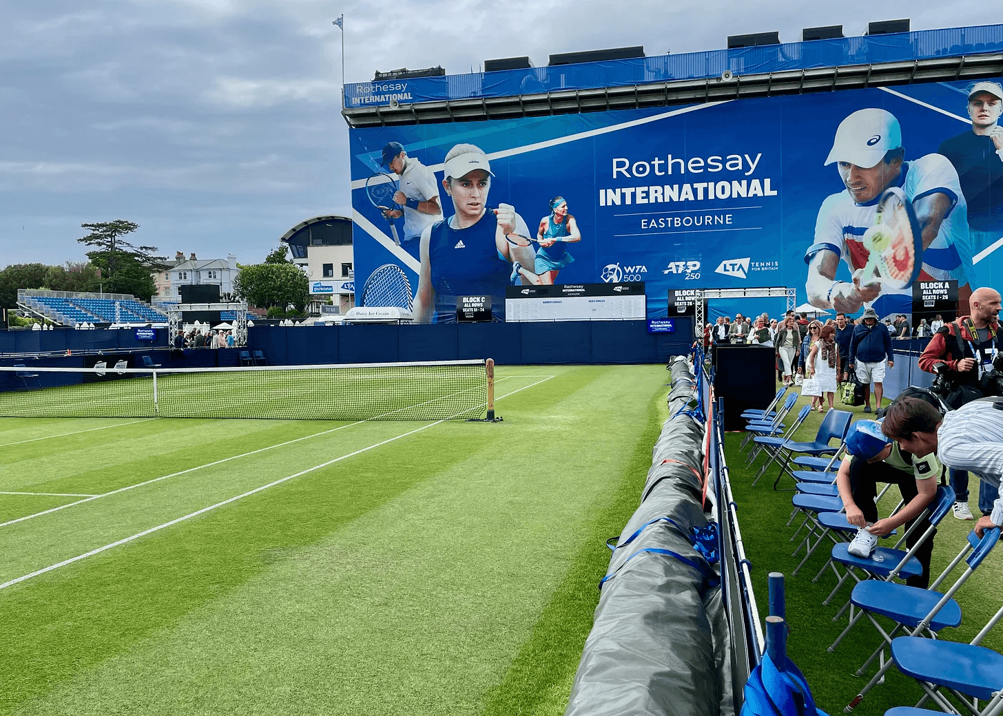 Devonshire Park all dressed up for the Eastbourne International tournament during the 2021 pandemic, just after tennis resumed.