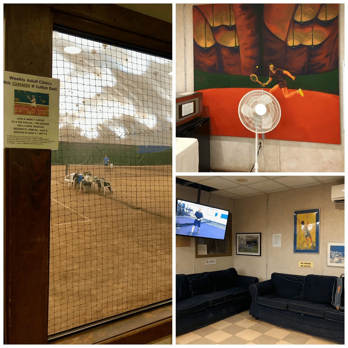 The lounge at Sutton East Tennis Club. Half-indoor, half patio, it’s one of the most unusual waiting areas in Manhattan.