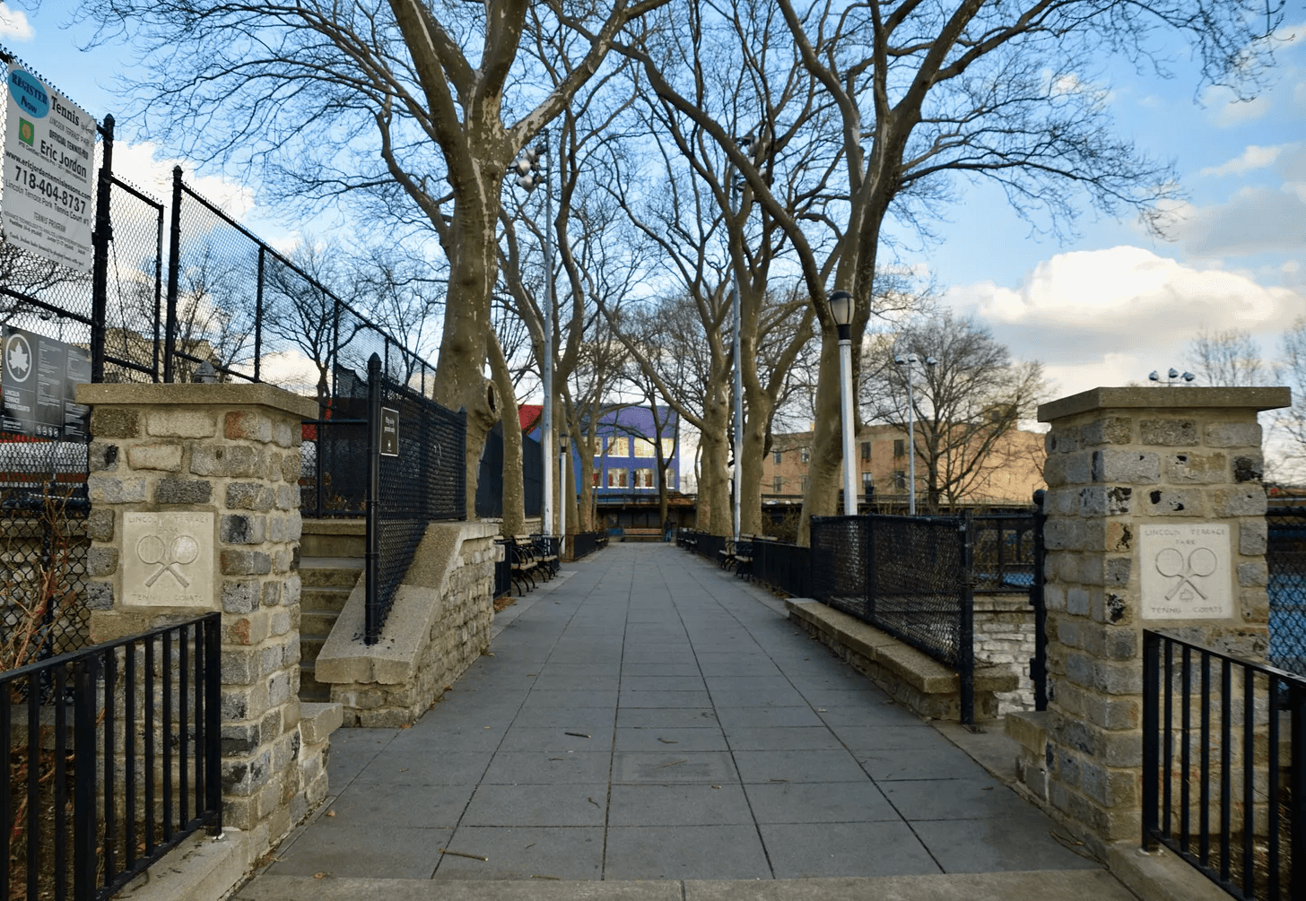 Lincoln Terrace Park is one of only two New York City parks named for the 16th president, Abraham Lincoln (1809-1865) and has long been a haven for the people of Brownsville, Crown Heights and East Flatbush. The 11 courts date back to the 1930s and were reconstructed in 1996 and again in 2014 with a new surface, retaining walls, fencing, benches and lighting.