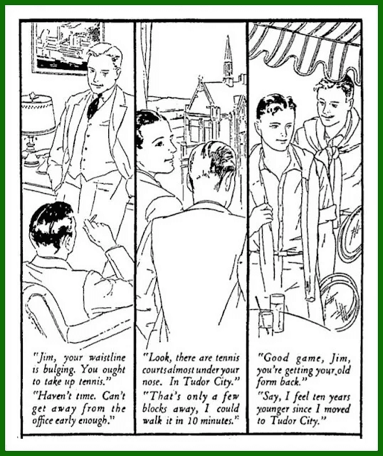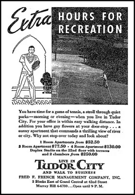 Ads for the Fred F. French company — featuring the Tennis Courts — which started developing Tudor City in the late 1920s.
